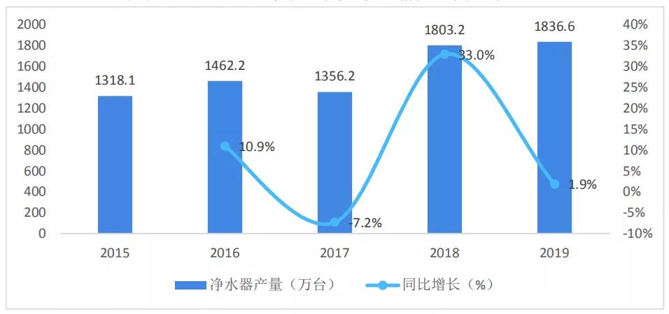1、净水器行业产量分析 2015-2019年,我国净水器产量呈现波动增长的趋势。2019年,我国净水器...